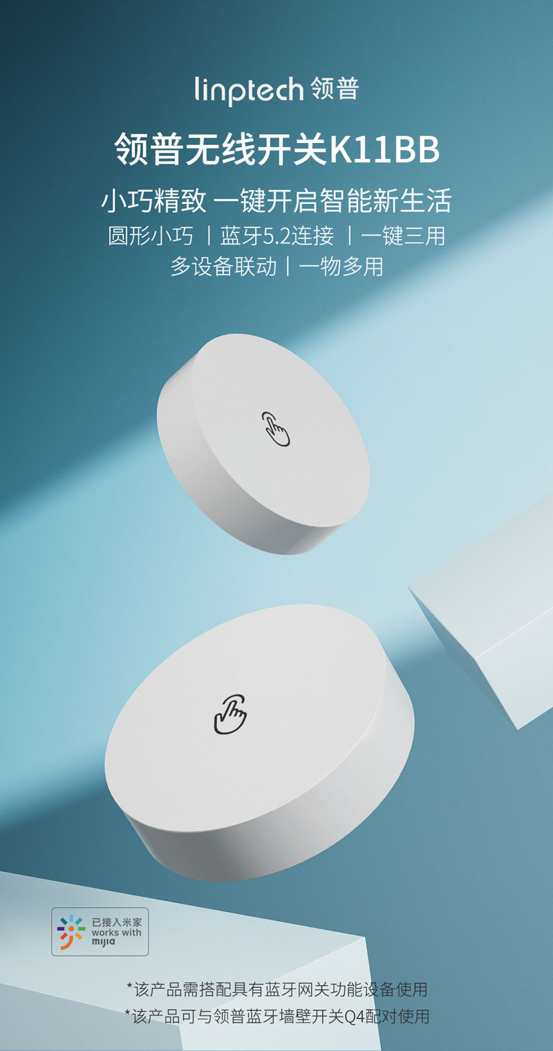 近日,領普全新藍牙無線開關全面開售,這款新品無需額外購買網關,可直連帶有藍牙網關功能的小愛音箱,接入米家后遙控多個智能設備或智能場景。