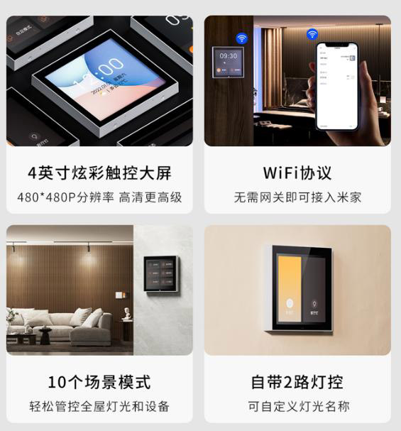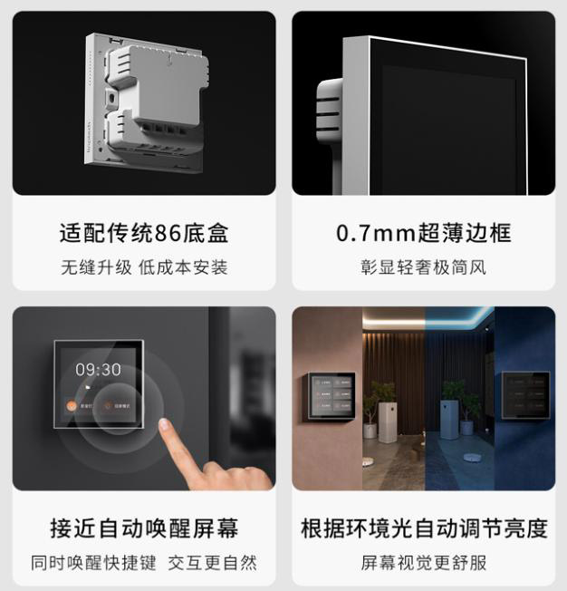 它的面板作為一塊“顯示屏”,在不脫離開關本質的基礎上也有很多小巧思,比如在手指靠近時自動喚醒屏幕,用戶可以準確找到開關觸控亮燈,480*480分辨率,指尖輕觸極速響應,為你營造更加流暢的交互體驗。