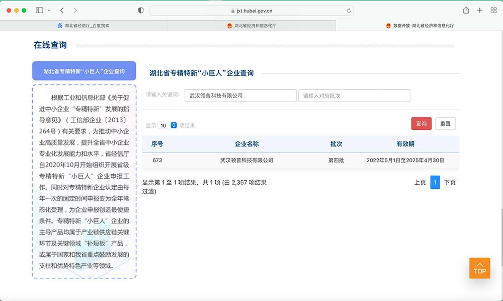 近日,湖北省經信廳發布2022年湖北省第四批專精特新“小巨人”企業名單,武漢領普科技有限公司(以下簡稱領普科技)獲得湖北省專精特新“小巨人”企業認定,喜獲榮譽。