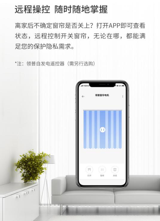 出門在外也可以用手機遠程控制窗簾開合,遇到窗簾忘關的狀況,在手機上即可輕松遠程控制開合,徹底治愈“健忘癥”!